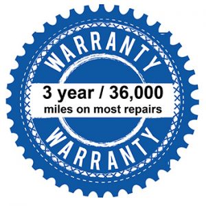 We offer a 3 year/100,000 miles warranty on transmission replacements and 3 year/36,000 miles on most general repairs. Feel free to give us a call and visit us today for any of your vehicle repair needs.